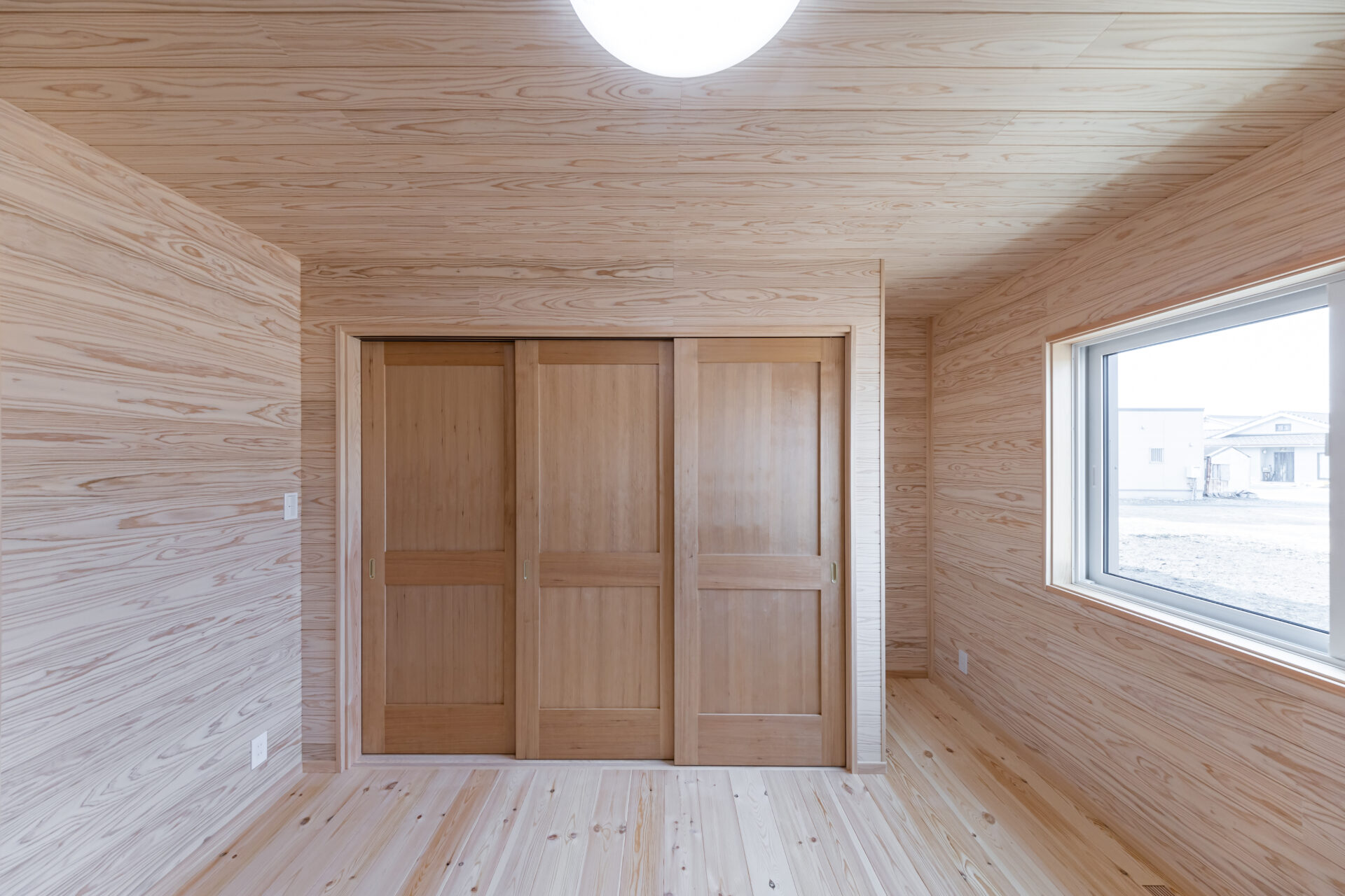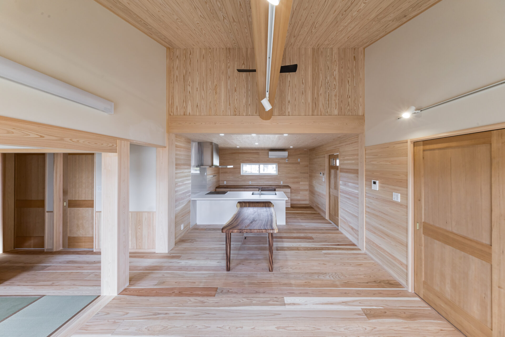 床や壁、天井、職人が仕上げた無垢の造作家具など
