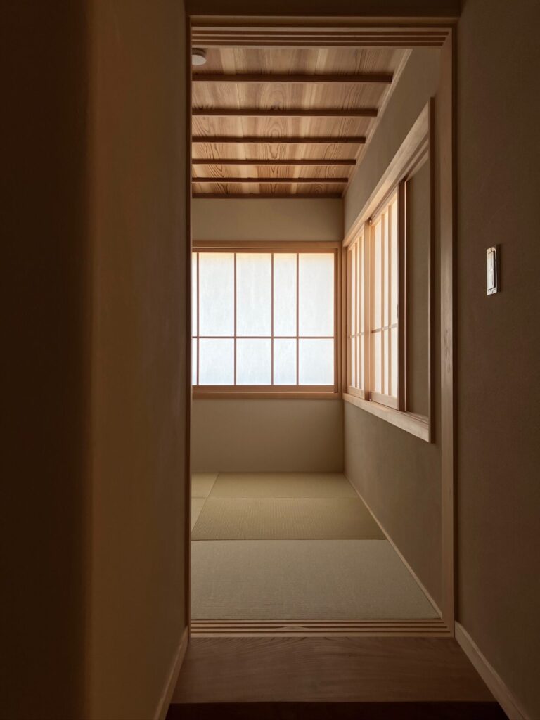 襖を開けると籠り感のある和室。客人の訪問など、ちょっとした時にもプライベートが守られるレイアウト。